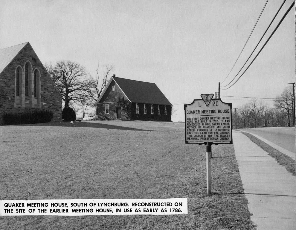 In 1936, Douglas Summers Brown, a local author, historian, and wife of the Quaker Memorial Presbyterian Church’s minister, wrote a detailed account of the South River Friends. Her book, Lynchburg Pioneer Quakers and Their Meeting House, remains the most focused source of information about the area’s early Quaker community and their Meeting House.
